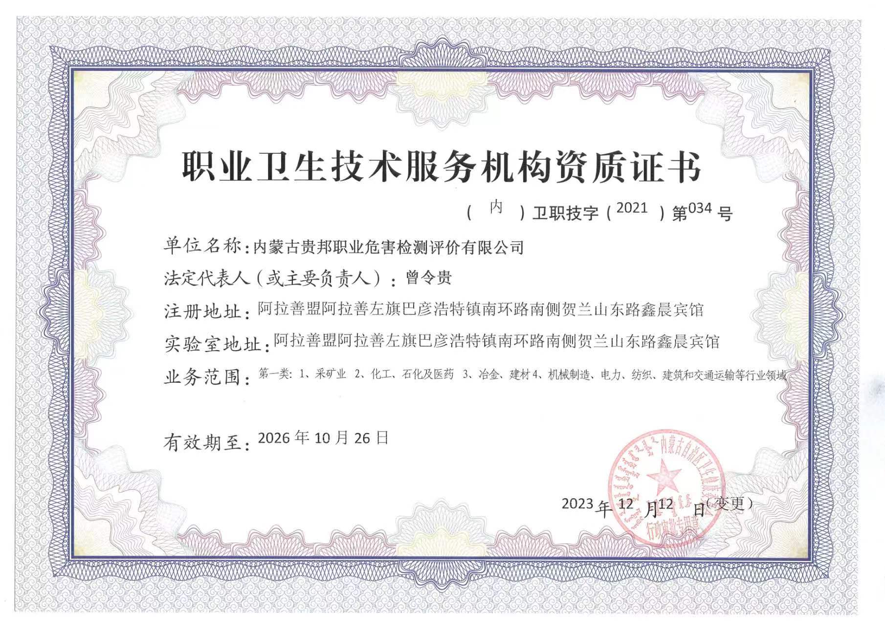 內(nèi)蒙古貴邦職業(yè)危害檢測評價有限公司(www.sxjchj.com)版權(quán)所有 地址:阿拉善盟阿拉善左旗賀蘭山東路加氣站南側(cè)鑫晨賓館一樓 24小時熱線:18947252199 蒙ICP備:蒙ICP備21006705號-1 公安備案號:50011802010212